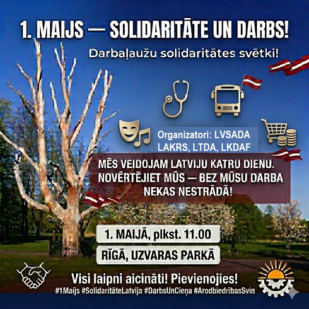 1. maijā aicinām pievienoties arodbiedrību Darba svētku svinībām Uzvaras parkā!