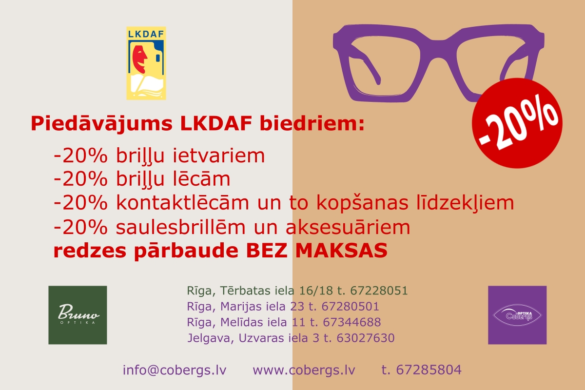 LKDAF biedriem uzrādot Biedra karti, iespējams saņemt šādas atlaides: